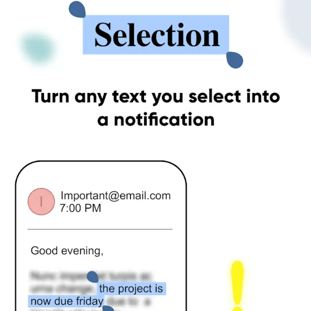 Il funzionamento è tanto semplice quanto funzionale. Permette di creare dei memo da salvare all’interno della tendina delle notifiche semplicemente selezionando il testo da qualsiasi posto (app) in cui siamo all’interno del nostro smartphone. Basterà appunto andare a selezionare il testo, dare il consenso a Selection di creare il memo e questo andrà ad inserirsi tra le nostre notifiche. Cosa smart/intelligente è che una volta lì non potranno essere eliminate erroneamente andando a ripulire la nostra tendina notifiche. I meno rimarranno bloccati fino a quando non saremo noi a selezionarli e impostarli come eseguiti/non più utili.